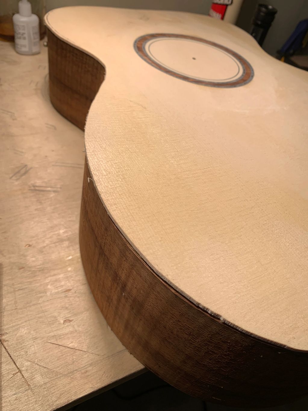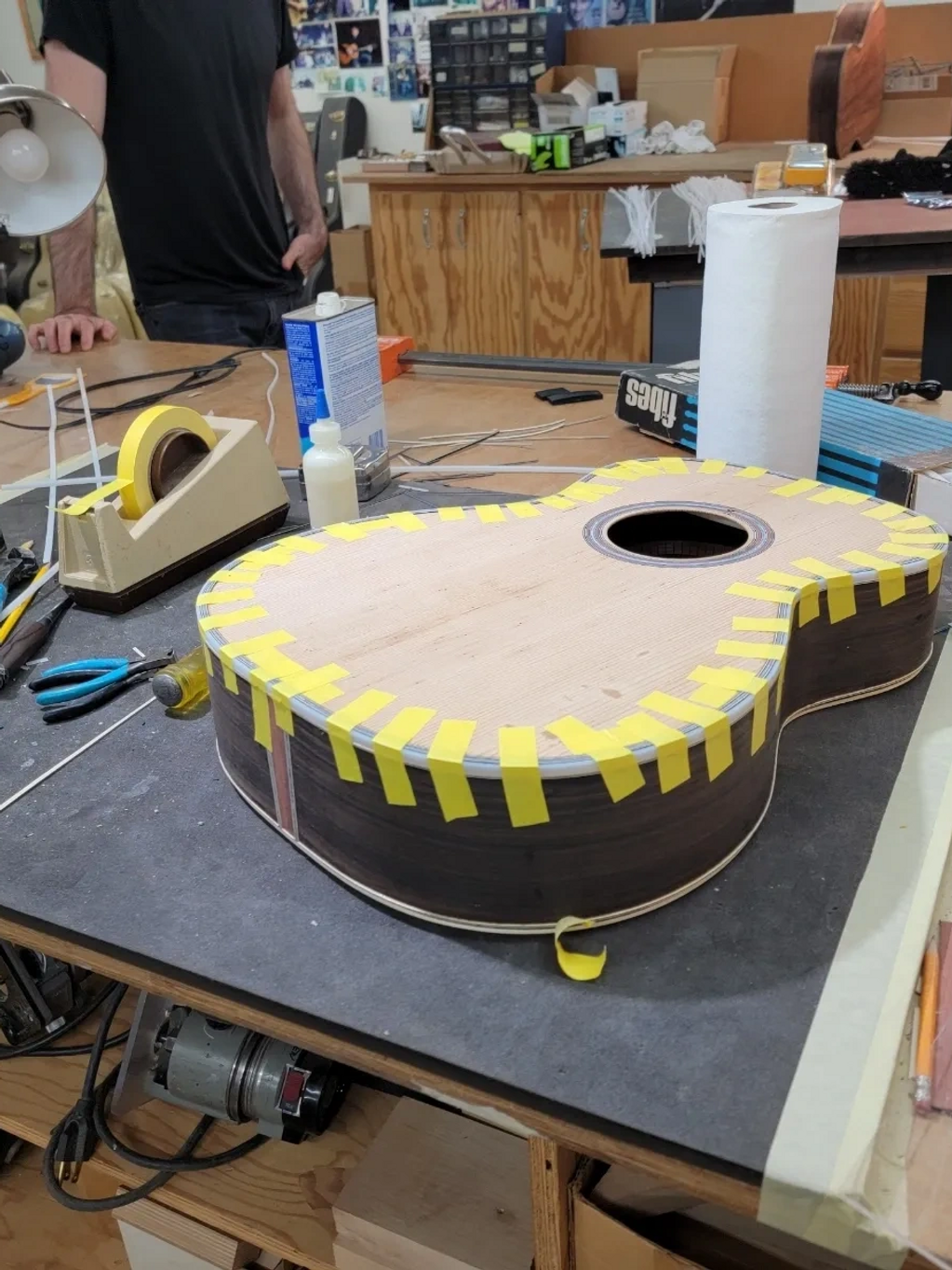 "The Resurrection" - Andrew Bowen with our good friend James Olson contributing his mastery to help us make this historic guitar a masterpiece worthy of it's history and future.