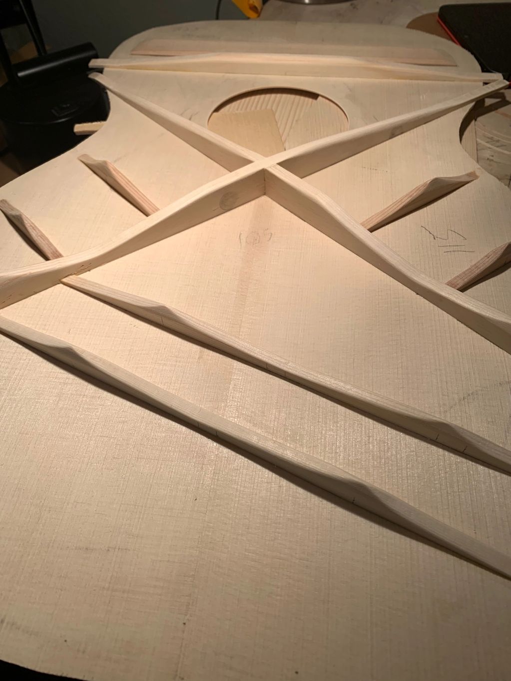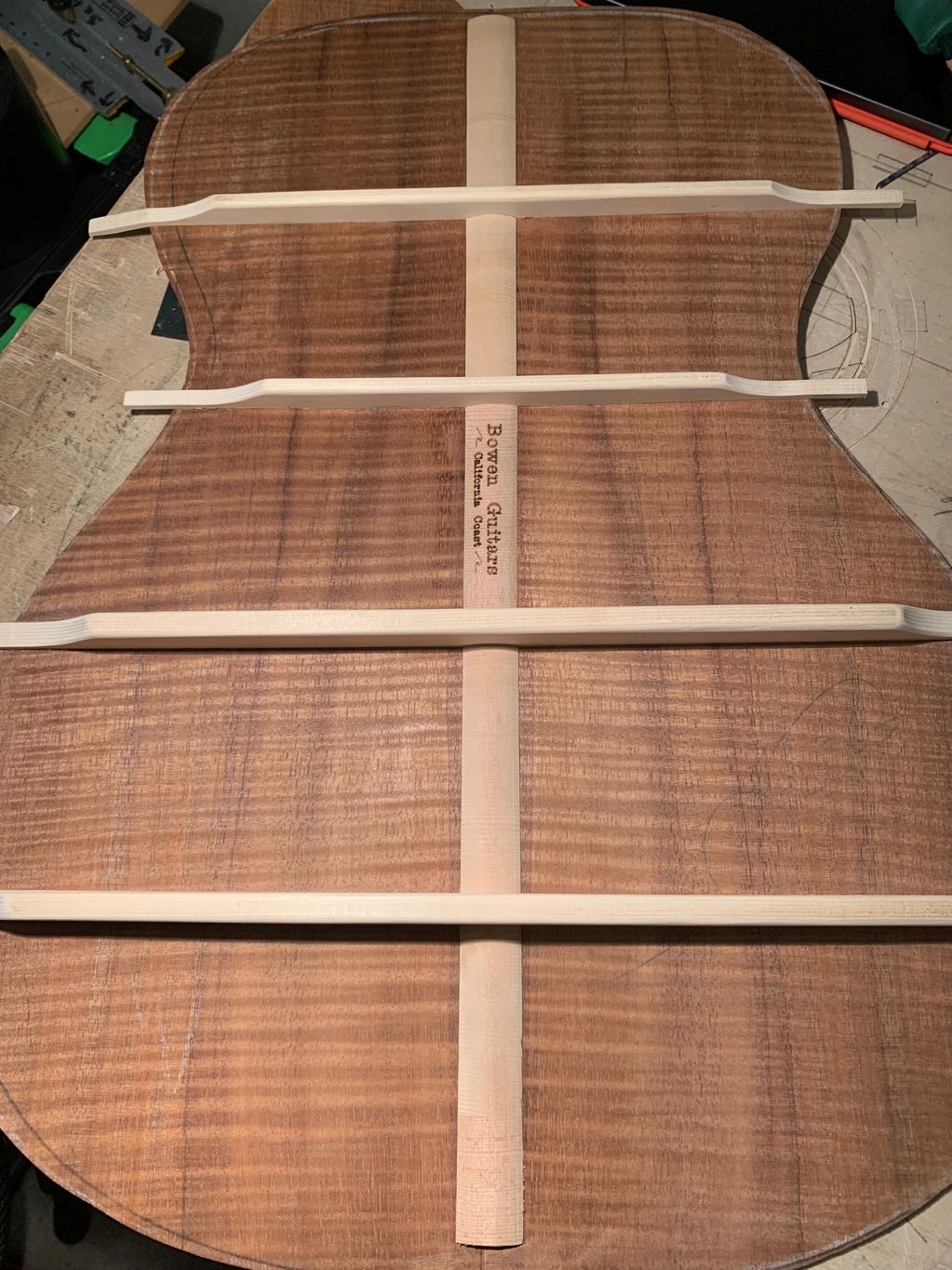 Amazing Grace -each brace is hand selected from our large stock of Bracewood ensuring there is no run-out and the tone of each brace rings like a bell. The bracing pattern is the secret sauce of our guitar sound.