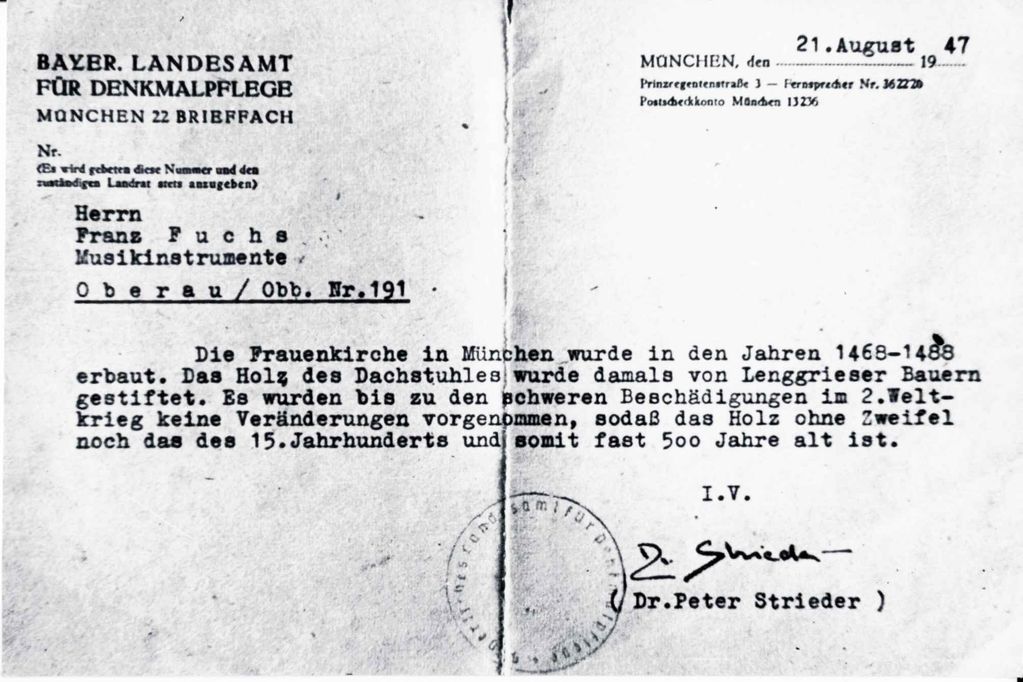 "The Resurrection" guitar's top Certificate of authenticity coming from the ruins of the Munich Frauenkirche ruins.
